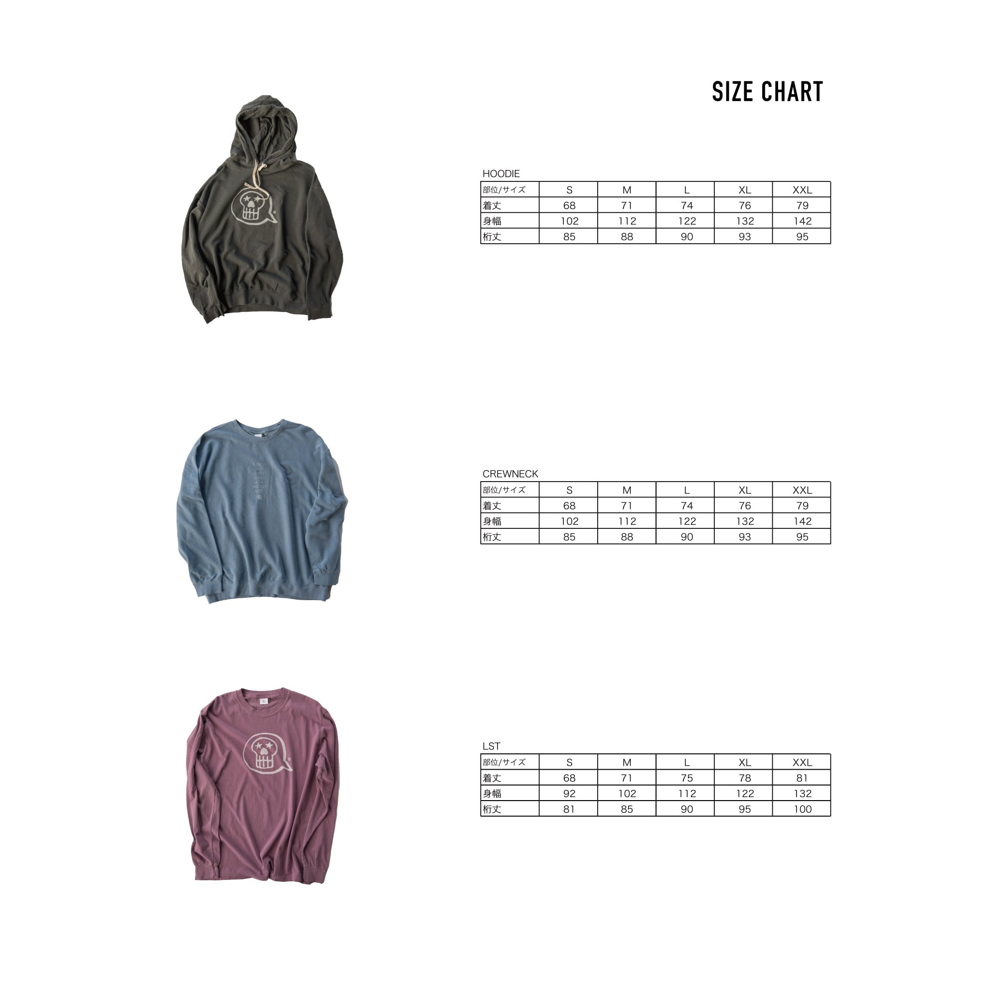 フロントにはスカルロゴを生地に染み込ませる方法でプリント。表情にとても馴染みました。