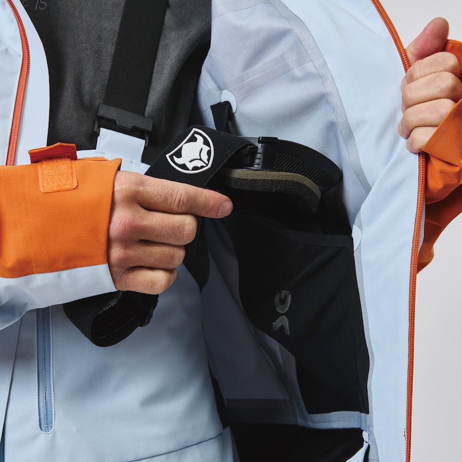 雪の侵入を防ぐパウダーゲーターを配置 / 写真は同仕様のCLOUD JACKET