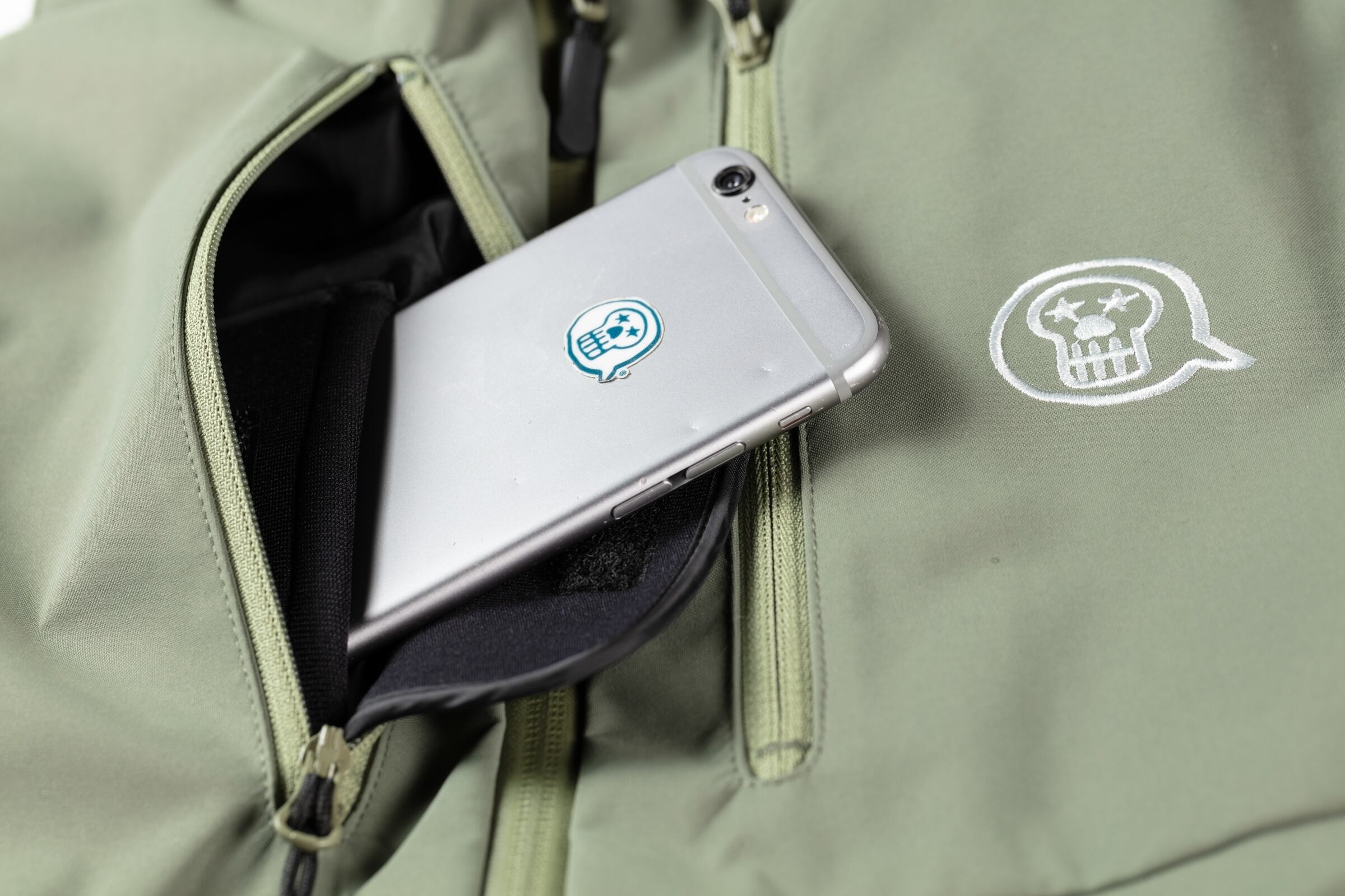 ビブ両ポケット内には、ネオプレーン製のポケットを装備しています。このポケットには寒さに弱いスマートフォンなどを入れておくのに最適です。ポケットの中でスマートフォンが動かないばかりか体にフィットする部分ですので保温性もあり電池の減りが恐ろしく軽減されます。